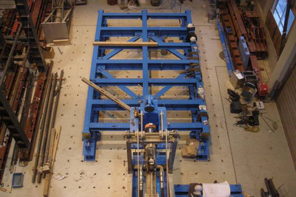 本装置は、工学院大学の発案によるテコ式振幅増幅機構を用いることで、振幅±1100mm程度までの長周期振動を再現可能としています。また、同じ場所で他の実験ができるように、設置及び解体が容易な構成にしています。