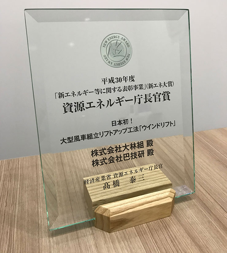 - ウインドリフト装置が平成30年度 新エネ大賞 資源エネルギー庁長官賞 受賞