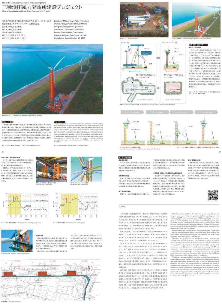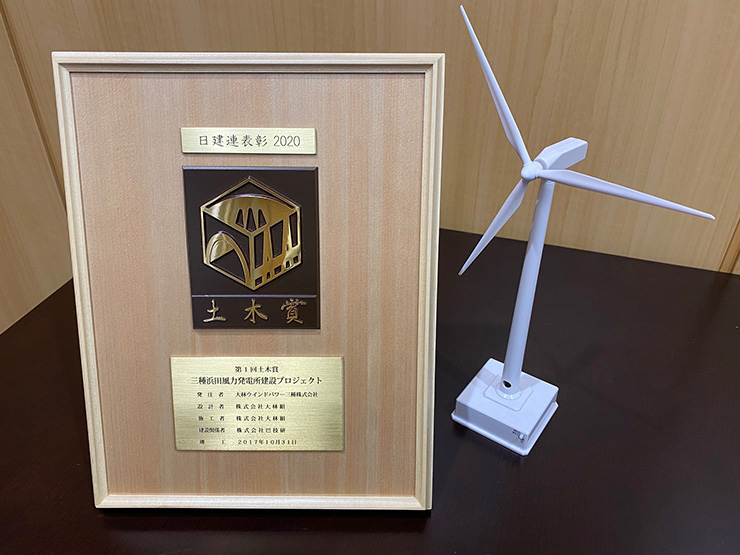 - 三種浜田風力発電所建設プロジェクト 第一回日建連表彰土木賞受賞