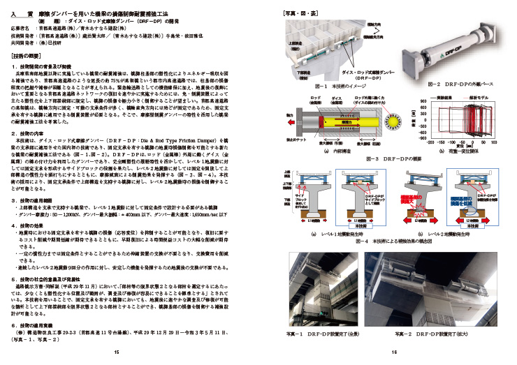- 摩擦ダンパーを用いた橋梁の損傷制御耐震補強工法(ダイス・ロッド式摩擦ダンパー(DRF-DP)の開発)第23回国土技術開発賞入賞